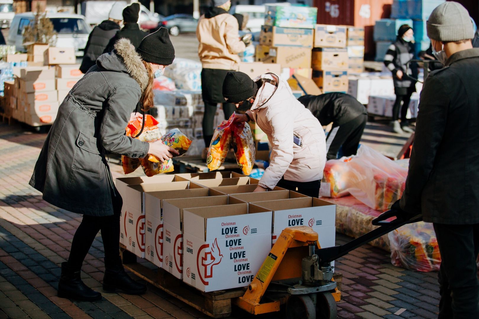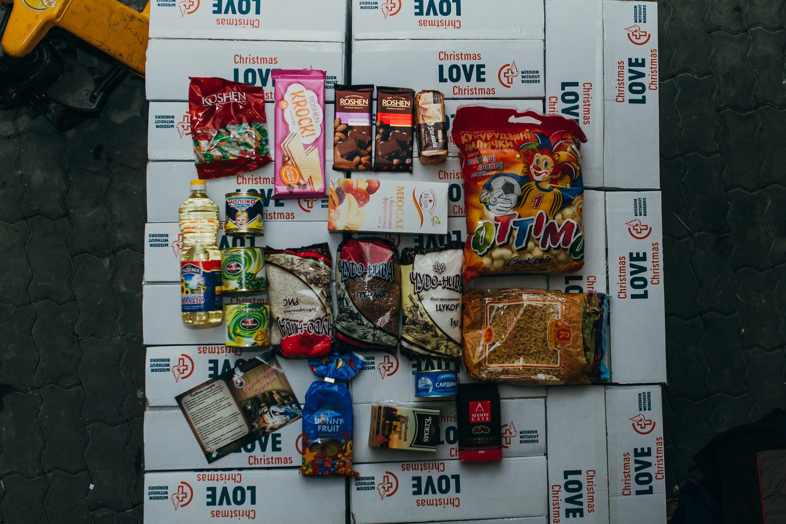 Each box is filled with essentials, treats, and the message of God's love